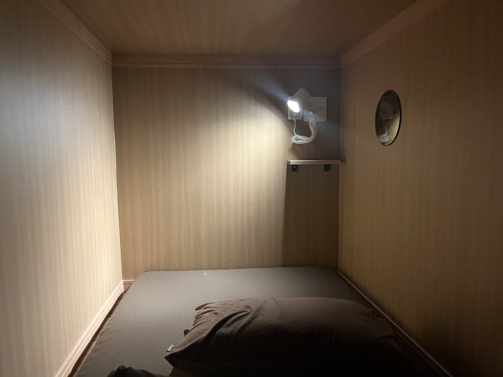 ― 未明の滞在対応に比田勝ターミナル内には仮設の仮眠ブースがあった ―